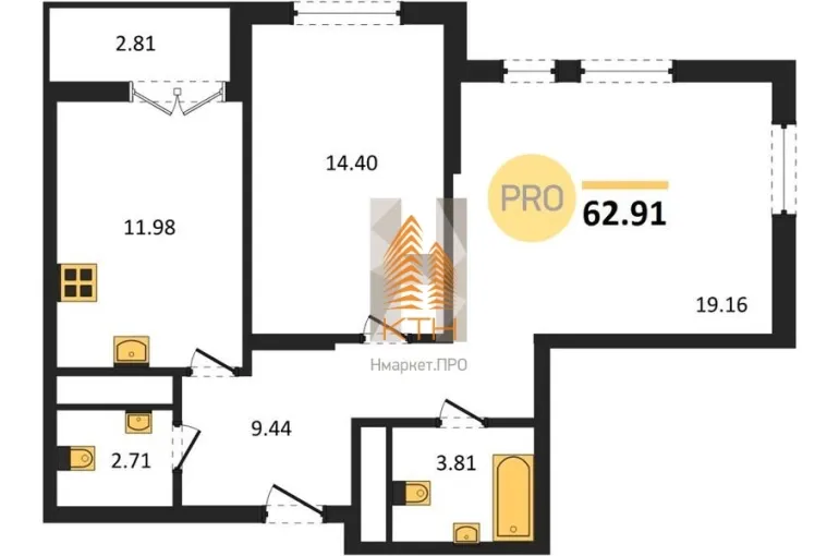 | Площадь, кв.м. | 62.91 |